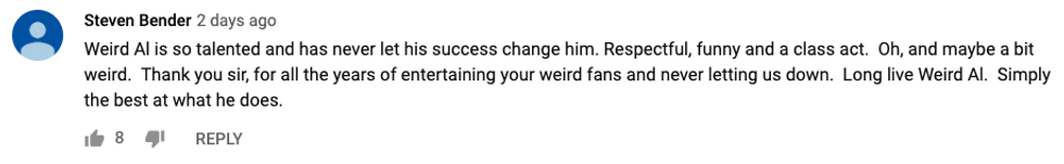 It doesn't seem to matter, though. Yankovic's having a good laugh at his own expense and his fans love him just the same.