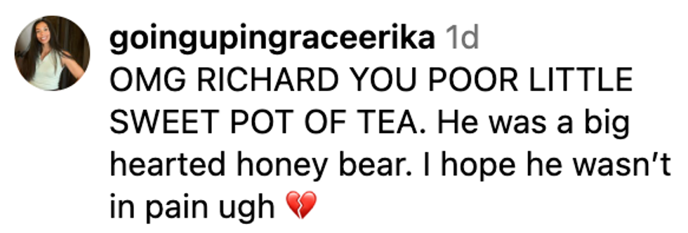 Shore responded to the news via Instagram, sharing that he "was up all night crying regarding Richard Simmons’ tweet."