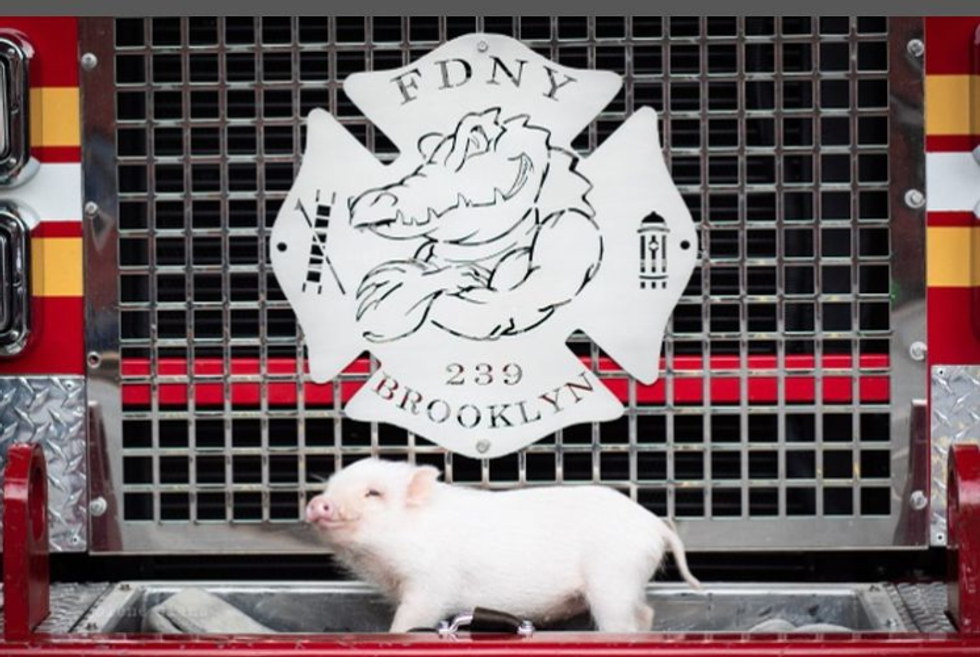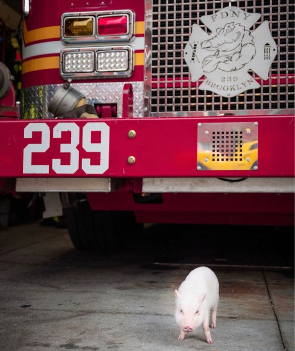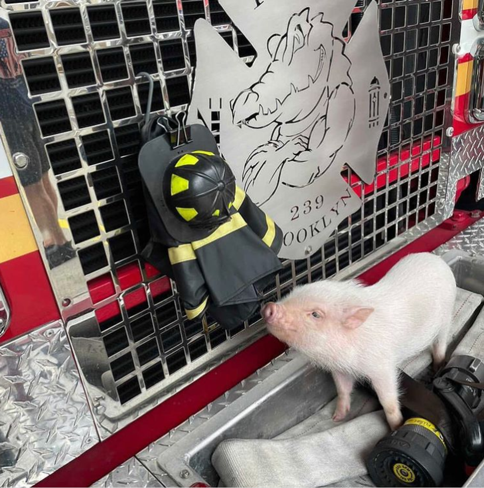 The whole internet loves Penny the Fire Pig, a lovely piglet that lives at a Park Slope firehouse! *5 seconds later* We regret to inform you the pig is anti-vax https://t.co/kq7YGmPeJI