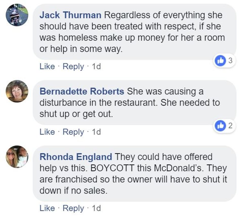 They added that in this instance, the woman had "been there for around two and half hours. In that time she reportedly slept in the lobby and soiled her clothing. They added that although she did buy food, customers were complaining that she was loud, obnoxious, and bothering them."