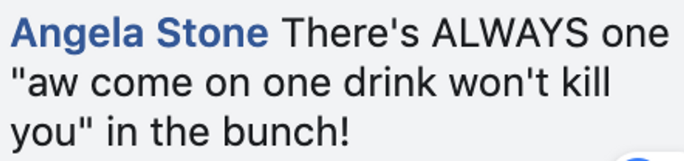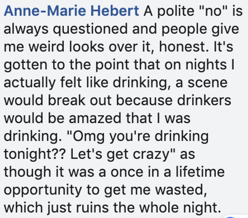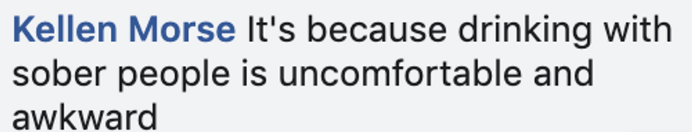 There was vehement disagreement from some on Facebook, most largely missing the original point of the post (or proving the poster's point by insisting that people who don't drink are lame).
