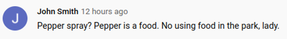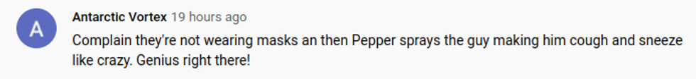 Comments to the video drew some angry responses to the woman's pepper-spray antics.