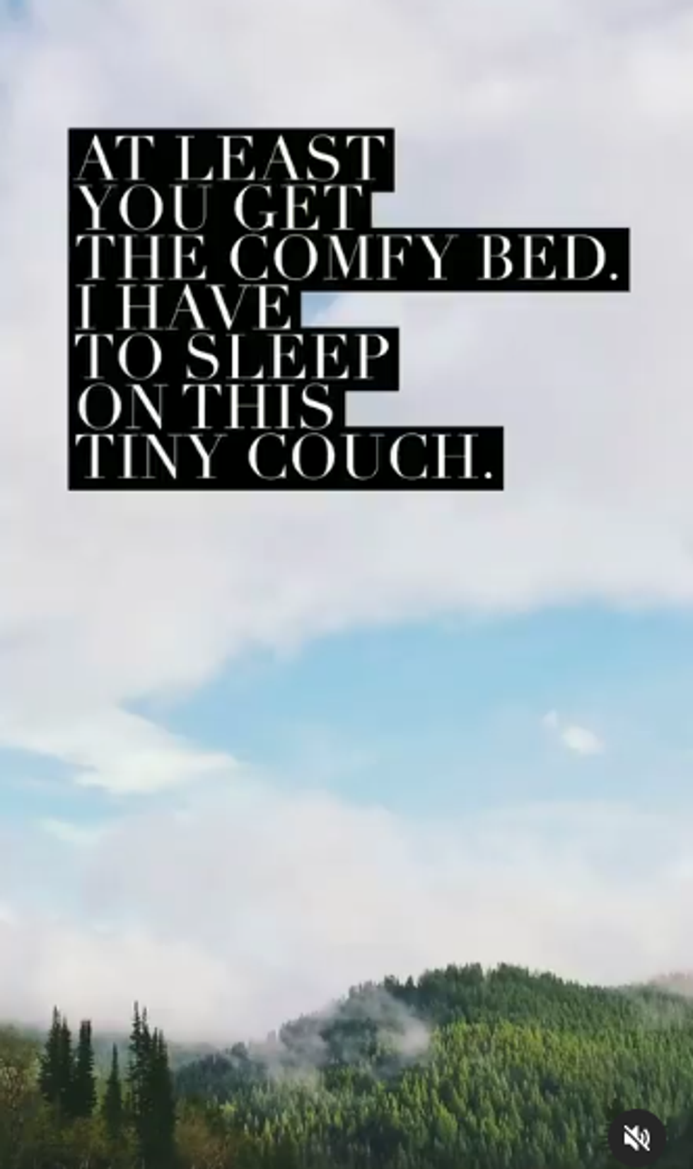 "At least you get the comfy bed. I have to sleep on this tiny couch."