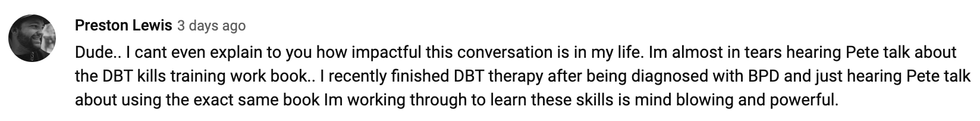 Viewers of the interview applauded Davidson, who was diagnosed with borderline personality disorder (BPD) at 23, for willingly opening up about his trauma, his process and also navigating his fears associated with PTSD and BPD.