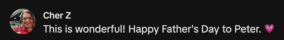 “And it being Pride Month and Father’s Day being yesterday, it occurred to me that some people in our family, our LGBTQIA+ family, maybe haven’t heard it from a father yet this Father’s Day."