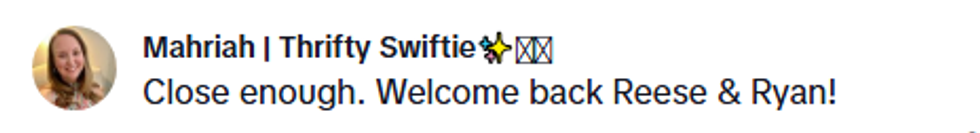 In response, the pair shared a follow-up TikTok, pinning a "Ryan and Reese" comment as a text overlay.