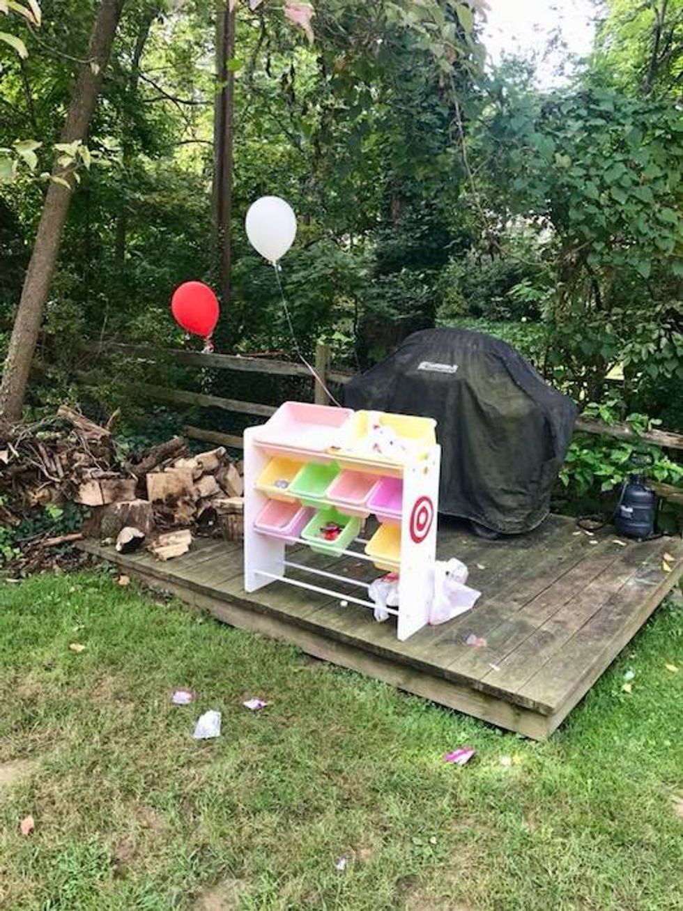 Then for party favors, we did a “Dollar Spot” I had a toy bin with bulk items and our local Target was so nice to give us checkout bags and stickers for the kids. They grabbed them and went 'shopping'. She woke up from her nap when everything was decorated and she was just in awe. She yelled, 'Yayyy! Target!' "