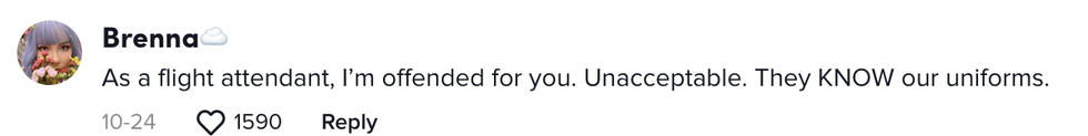 In the video, which has been viewed 1.9 million times already, Johnson shows herself in her uniform in what appears to be the cockpit of a plane with the words, "Gate agent looked me in the eye today and asked if I was the flight attendant," followed by the words "common occurrence" in parentheses.