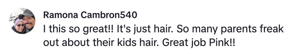 During a break between songs, P!nk said of her daughter's newly-shorn head: