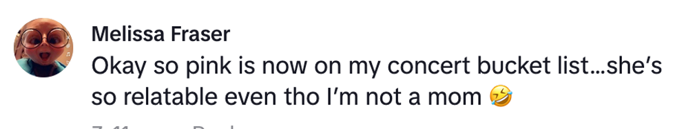 The clip of P!nk getting candid was posted on TikTok by a fan who wrote that the singer was "showing us [she's] just human and a mother of a teen girl."