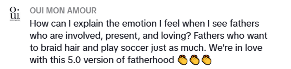 What followed was a touching video, featuring three dozen dads of all different races and backgrounds, enjoying drinks and each other's company, and cheering each other on as they learned about different hair types and hairstyles.