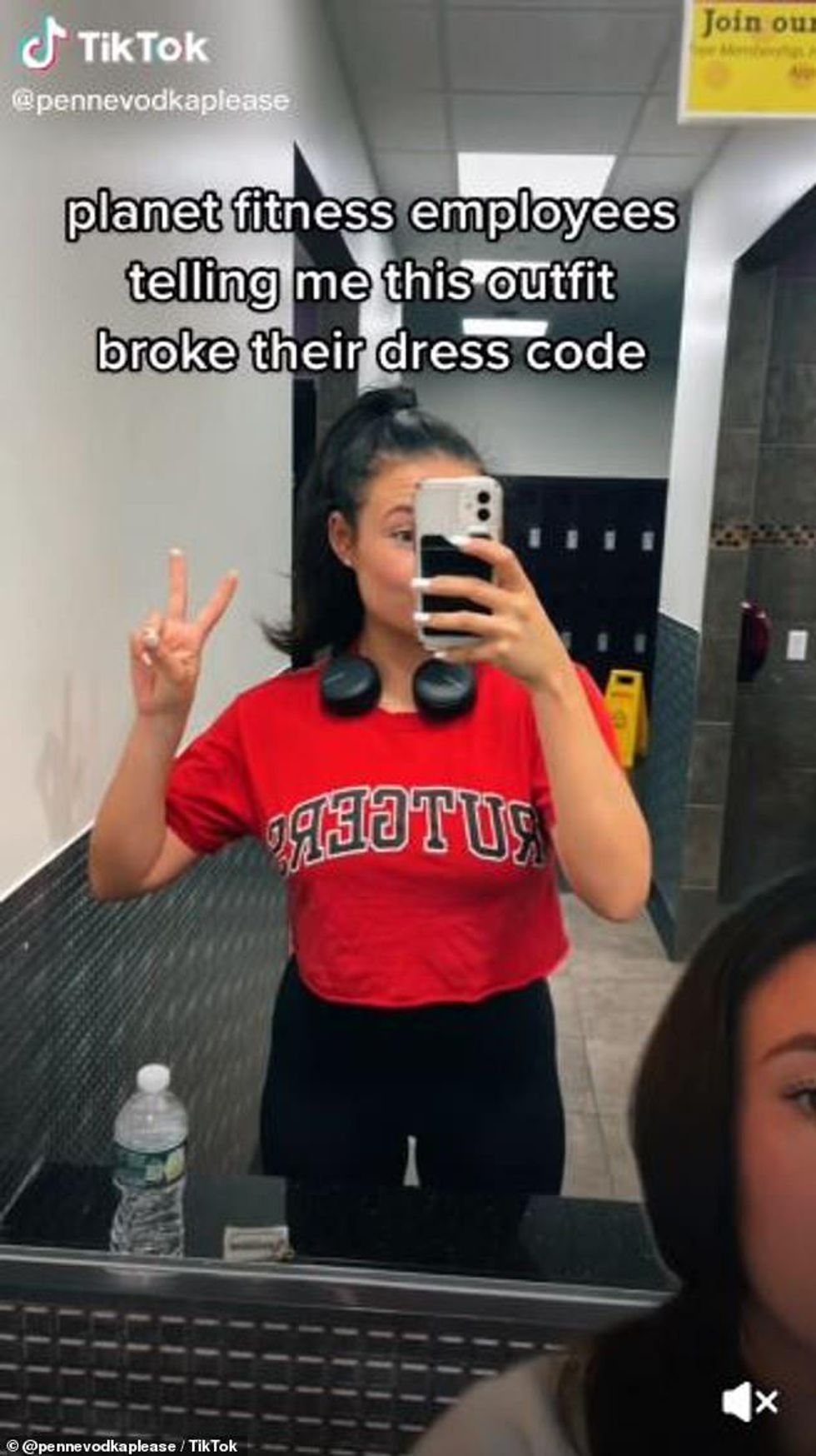 A woman was asked by a Planet Fitness staff member to cover up or leave the premises because she was purportedly violating the gym's dress code.