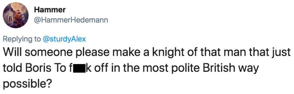 Labour MP for Liverpool Walton Dan Carden meanwhile tweeted: “This is what happens when Alexander Boris de Pfeffel Johnson actually comes face to face with “the people" he claims to speak for."