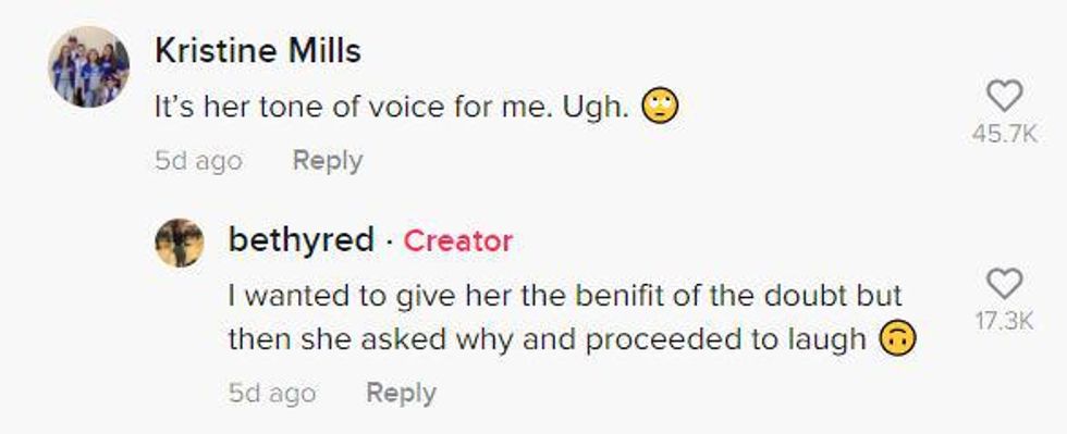 Red replied to a comment asking if the woman had apologized but she still doesn't know her identity. She hadn't seen her again.