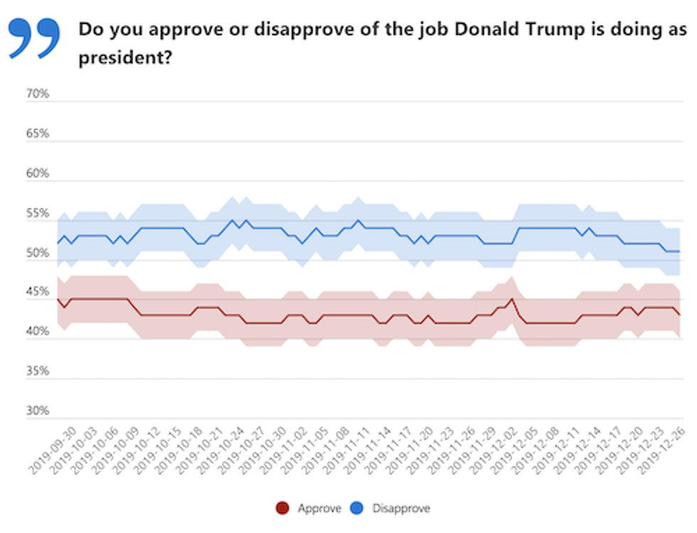 As of December 26, 54% of voters give Trump failing marks for his job. Only 43% approve of the Trump presidency's results.
