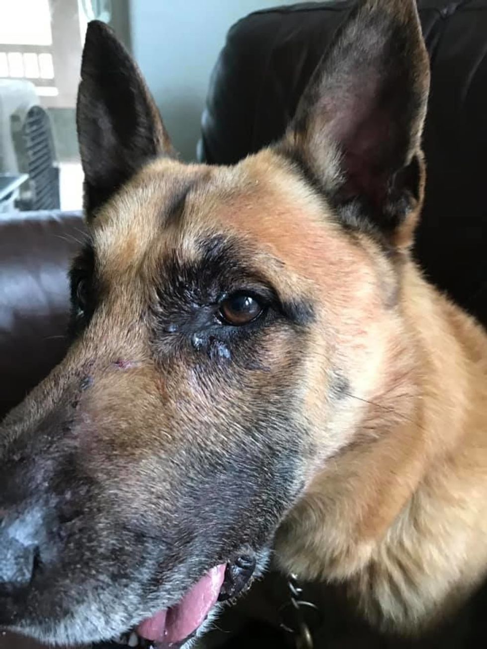 “Odin is feeling much better today!!! Although he looks kinda like Rocky! The pictures don't do the swelling justice," Odin's handler Sergeant Adam Slater wrote in a Facebook post on Sunday.