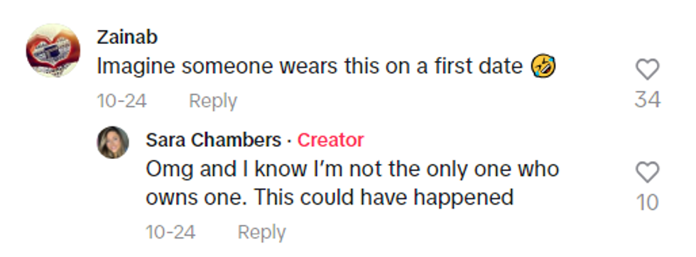 This is one of those funny instances where it's better to laugh than to be angry. While this could be an embarrassing side effect to an outfit that might otherwise make a person look good, Chambers actually found it to be a hilarious icebreaker.