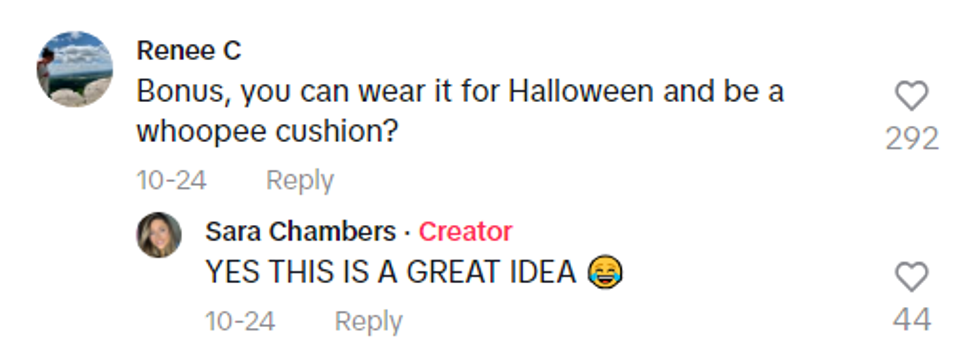 Collins confirmed that the suit does indeed make that sound, she officially wants to rename it "The Toot Suit," and the suit comes in multiple colors. Those who are interested could have one in every color, for every gassy occasion!