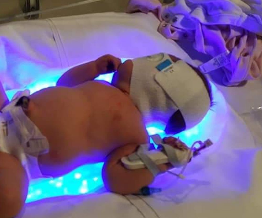 Emmett was kept in for observation, and was lying beside his mom in his hospital bed when her water broke four weeks early.