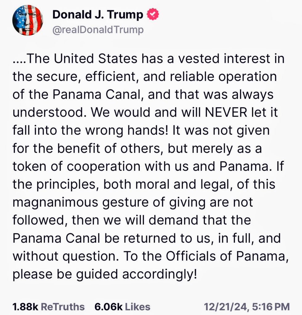 Regarding Panama, on Saturday Trump posted: