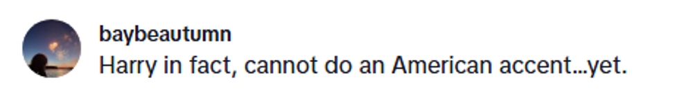 Prince Harry then repeated the sentence in a fairly convincing Midwestern-ish accent.