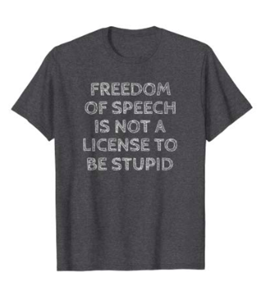 You can refute those claims with this Freedom of Speech shirt, available here.