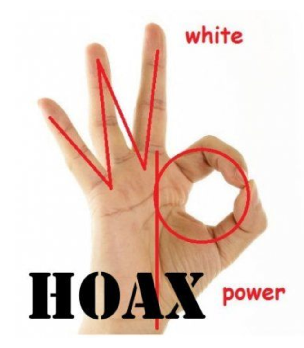 According to the Anti-Defamation League (ADL), the innocuous "OK hand gesture" was falsely promoted as a hoax to symbolize White power by an anonymous member of a 4chan discussion board in 2017.