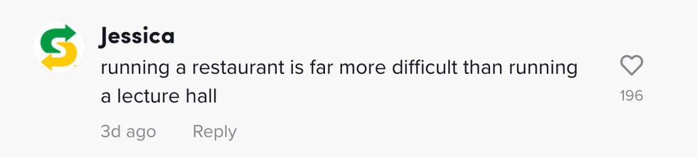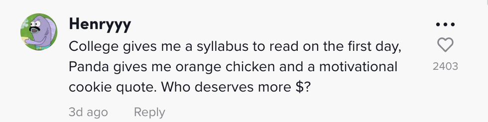 "You're really mad at Panda Express for paying their employees more, instead of getting mad at your college that you don't get paid more?"