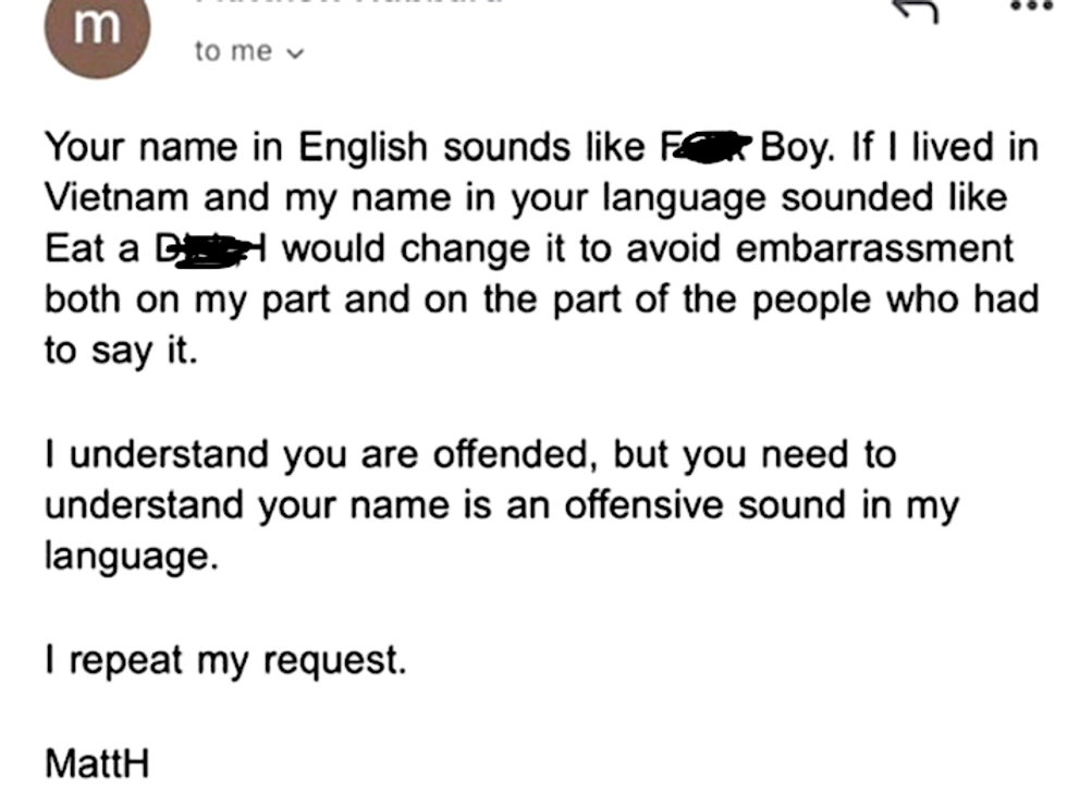 "I love that my parents want to keep my culture alive by keeping our Vietnamese name. If you can't say it then ask."