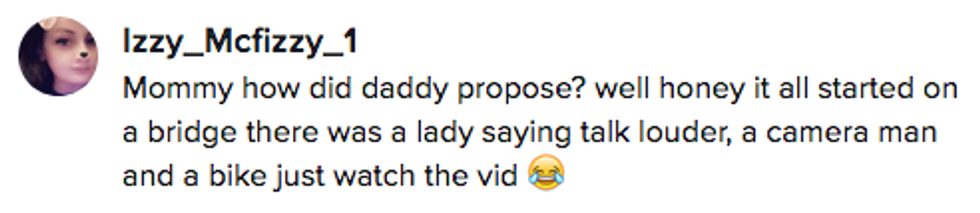 Thankfully, no one was hurt. The cyclist went on his way, and the proposal went off without any further hitches.