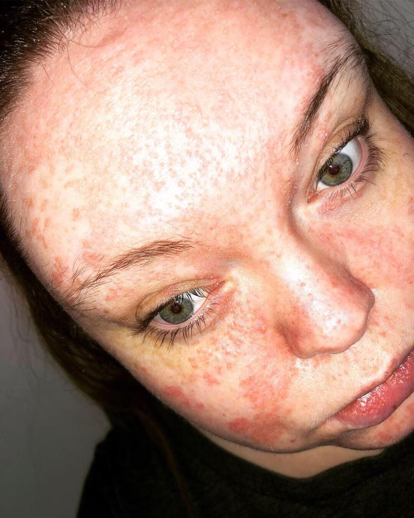 But in time, more and more vicious blotches sprang up until, eventually, her scalp, face, back, legs and groin were covered.