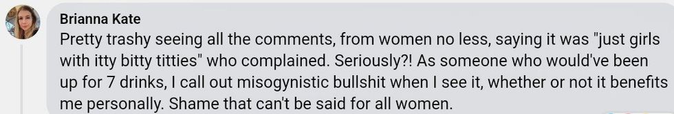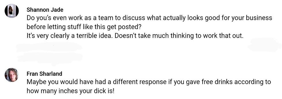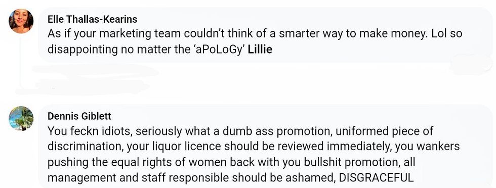 The pub's Facebook page was flooded with comments about the misogynistic promotion.