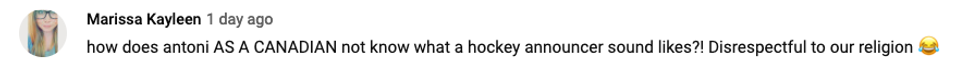 There were two hockey players going at it — basically, like, beating the hell out of each other — and I was genuinely concerned!'