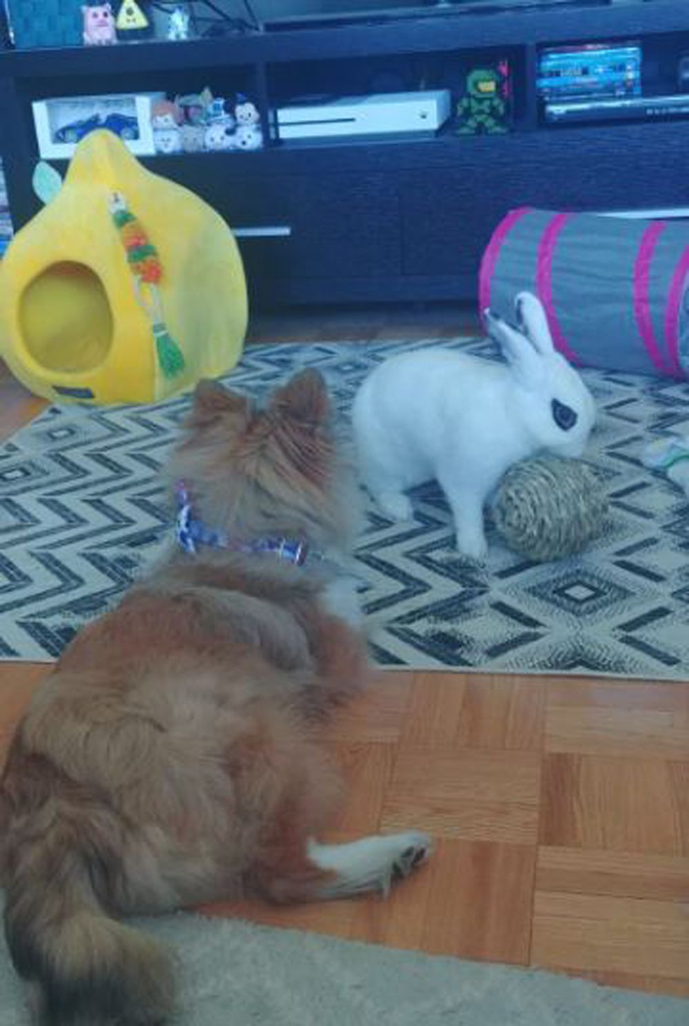 Now the dog and bunny relationship has evolved, Kelsey admits that they are like older and younger siblings “who very much love each other, but get on each other's nerves."