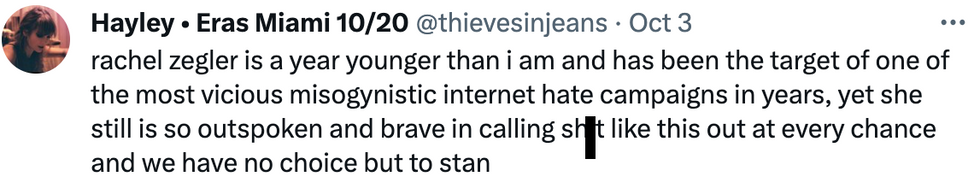 leave taylor swift alone!— rachel zegler (she/her/hers) (@rachel zegler (she/her/hers)) 1696343327