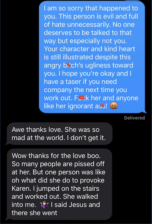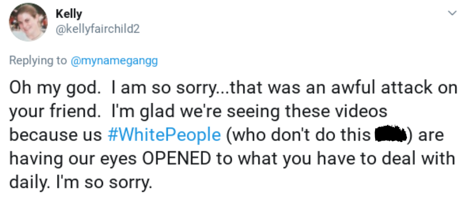 An additional tweet that included a screenshot of the text exchange between the victim and the woman who posted the video on Twitter elaborated further on the moments just prior to the rant that the video didn't capture.