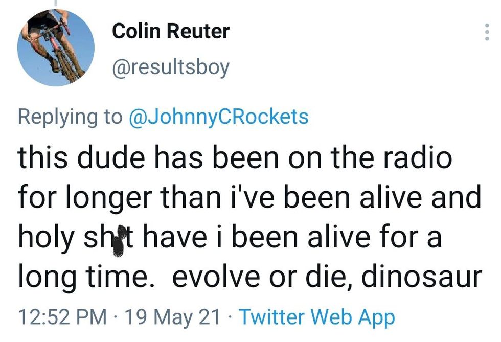 I think it IS time to get off the air Matty.\nMatt Siegel, \u2018Matty in the Morning\u2019 radio host, storms off the air after being warned about Demi Lovato comments https://www.bostonglobe.com/2021/05/19/metro/matt-siegel-matty-morning-radio-host-storms-off-air-after-being-warned-about-demi-lovato-comments/?event=event25\u00a0\u2026 via @BostonGlobe— Norrieaga she/ma'am (@Norrieaga she/ma'am) 1621474100