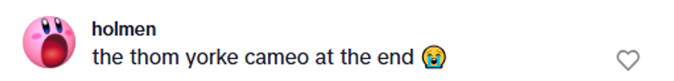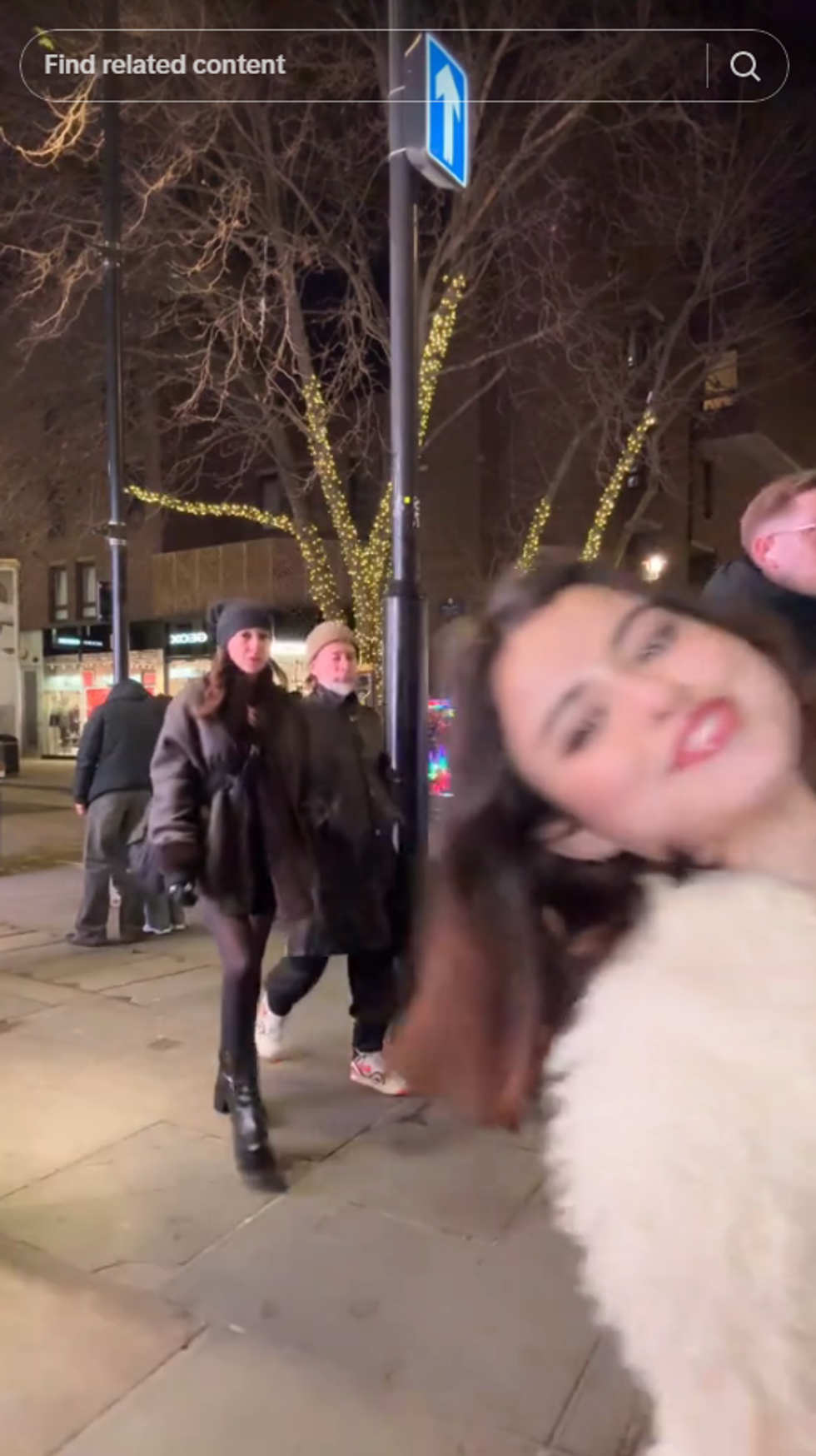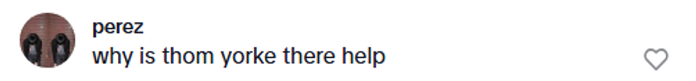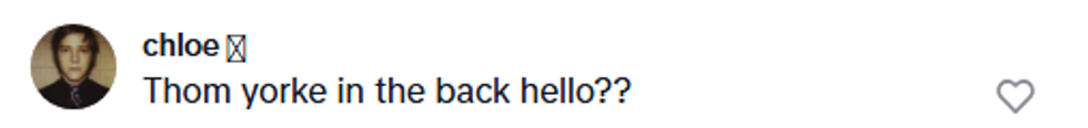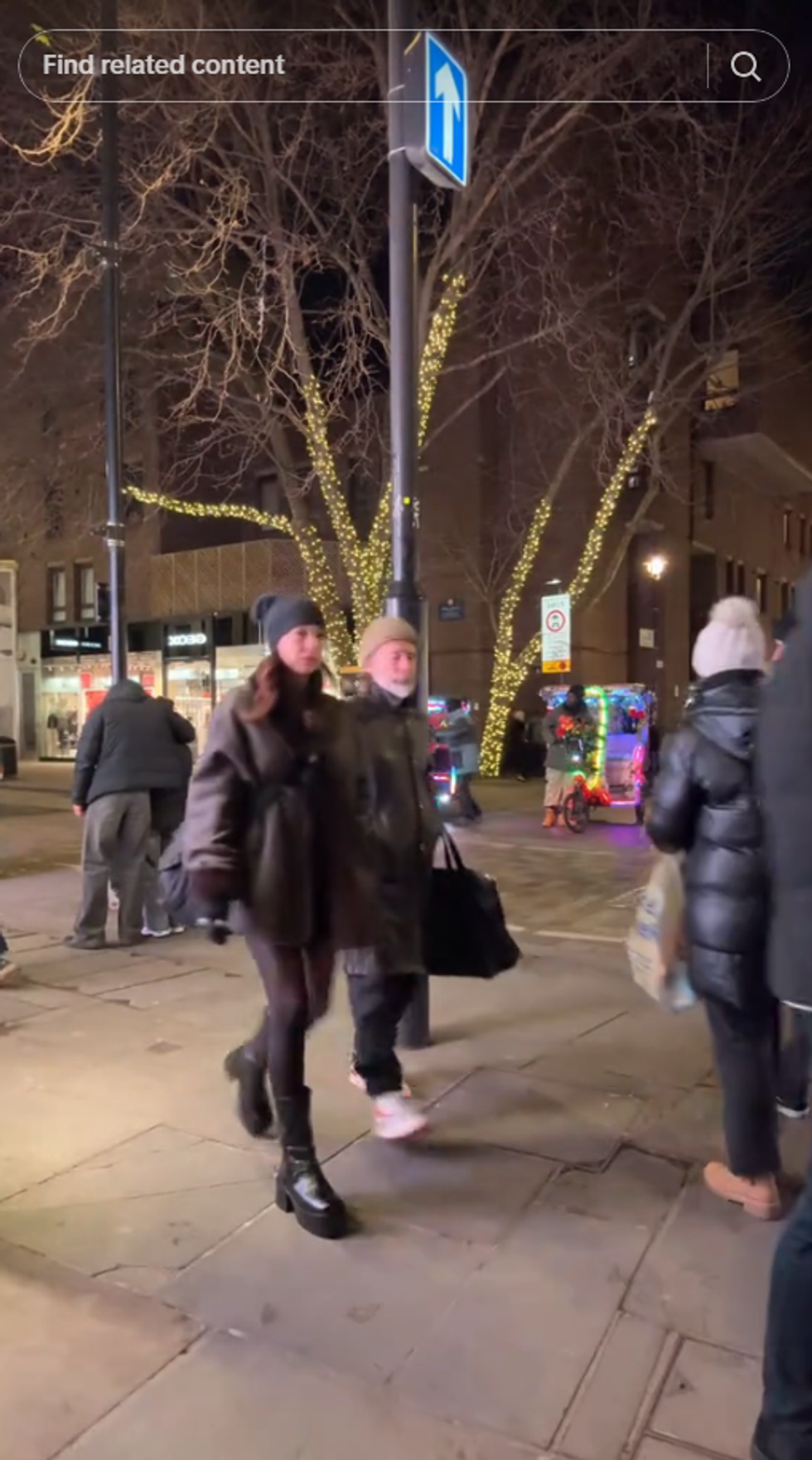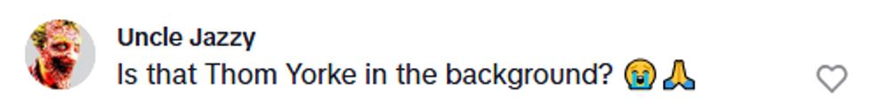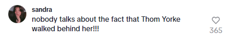 But as she dances, it goes unnoticed by the TikToker that Radiohead lead singer Thom Yorke and his wife walked past her in inconspicuous winter outfits, blending in with a crowd of people.