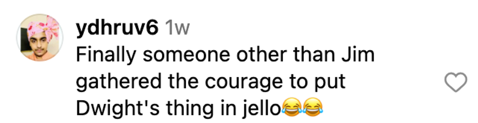 Of course, this in reference to the Office pilot in which Jim, played by John Krasinski, pranked Wilson's character Dwight by trapping his stapler in a Jell-O mold.