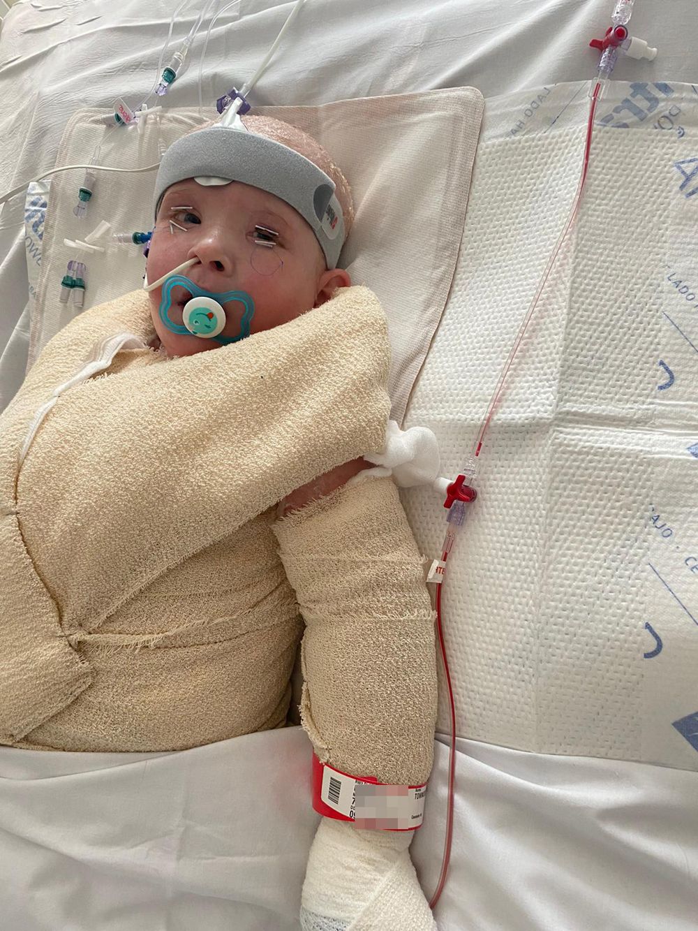 The rare condition affecting the skin was so severe that he “looked like a burns victim" and was bandaged from head to toe, with his eyes stitched shut.