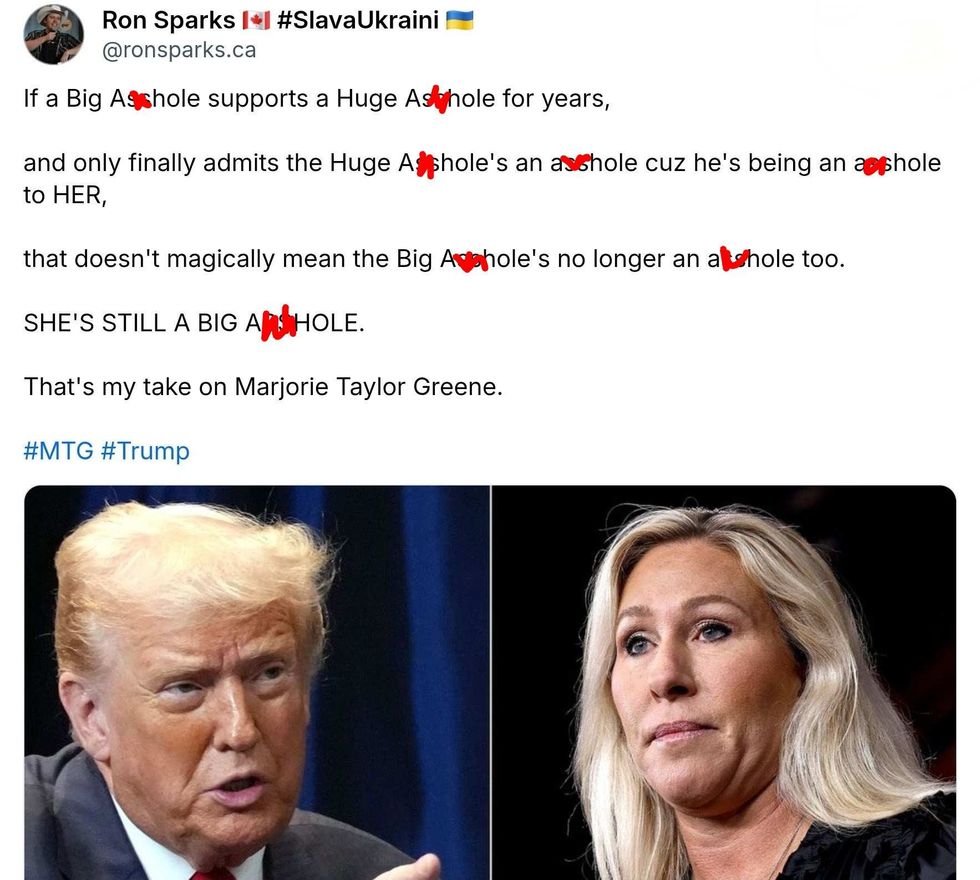 MTG was labeled a traitor by Trump and has been sparring with Texas Republican Senator Rafael "Ted" Cruz on X over her support of accountability for Epstein's gang of sexual predators, regardless of their political party or level of wealth.