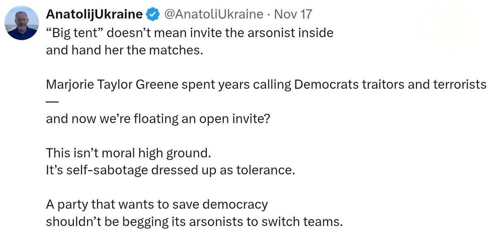 "We are a big tent. We must be a huge, vast tent. I say this is a party that’s got room for Marjorie Taylor Greene if she wants to come over."