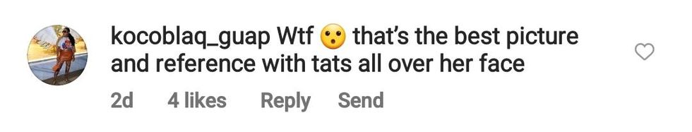 They added some face tattoos across her cheeks, a larger brightly colored one across her forehead, and hot pink to the whites of her eyes - which, when healed on Ray Js skin tone, makes them look totally bloodshot.