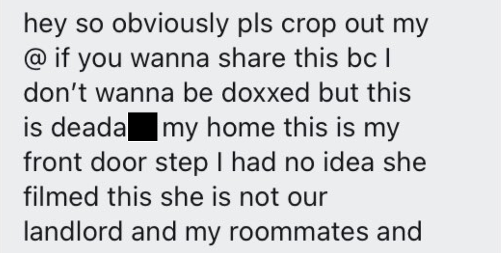 "So apparently this tiktok landlord does not actually own the building in this video. She asked the actual owner if she could film there (for internet clout points) and now the tenants of the building are quite understandably furious I insist: we should improve society somewhat."