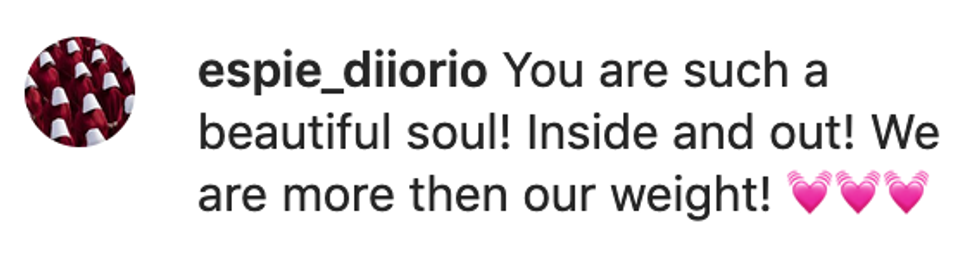 "But if you’re like me just know YOU are more than just your weight, your weight doesn’t define you, just try your best to be healthy and don’t be so hard on yourself 💗 Be the best version of you 💗"