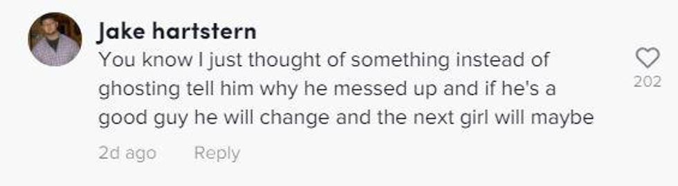 Another TikToker shared a different take entirely. He suggested that maybe she should tell him why she won't go on another date with him instead of ghosting.