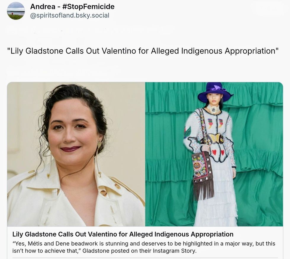 Award-winning beadwork artist Jamie Okuma discovered Valentino backpacks with Indigenous beadwork designs directly copied from antique Kiowa and Cheyenne moccasins.