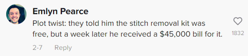 And who knows, if Goodwin keeps following the advice in the comments section, and he winds up needing stitches again, he might just go with the superglue plan next time, or offer to remove other people's stitches as a side hustle.