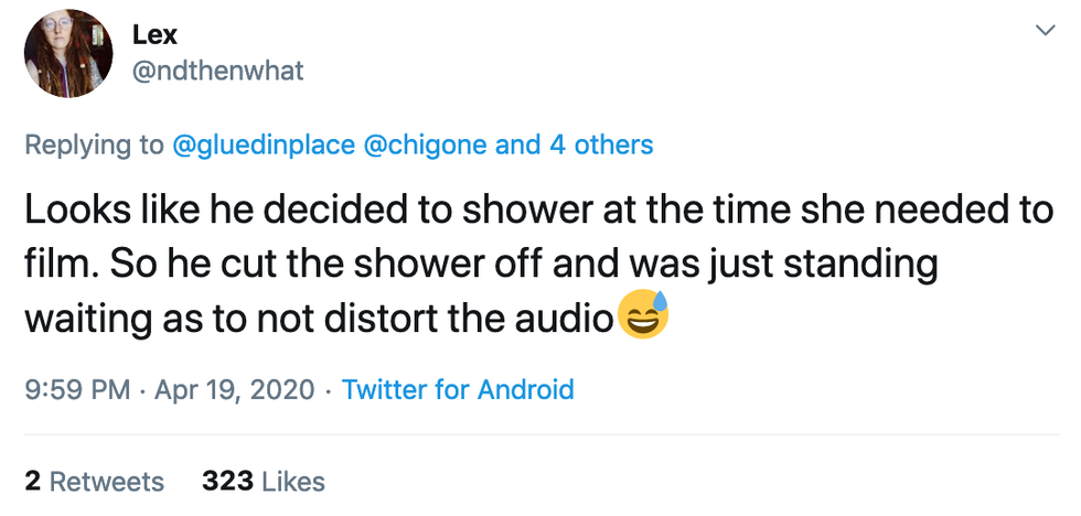It didn't take long for viewers to notice that someone was in the background reflected in the steamy bathroom mirror.