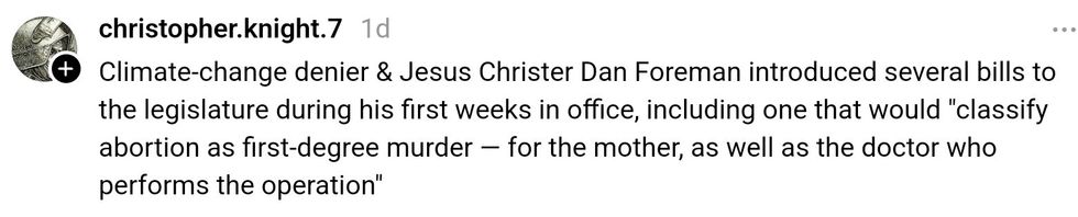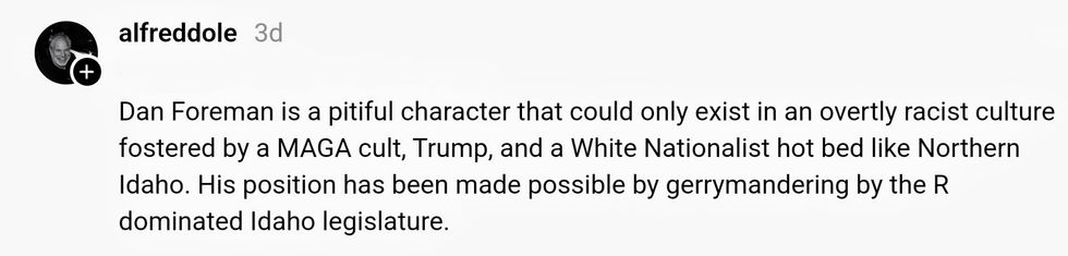 The 71-year-old Foreman—a retired police officer—also exploited the opportunity to spread his Christian nationalist, misogynist, homophobic and transphobic "values."